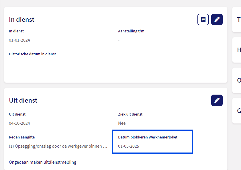 - Moment 2: 14 dagen vóór het bereiken van de Datum blokkeren Werknemerloket.