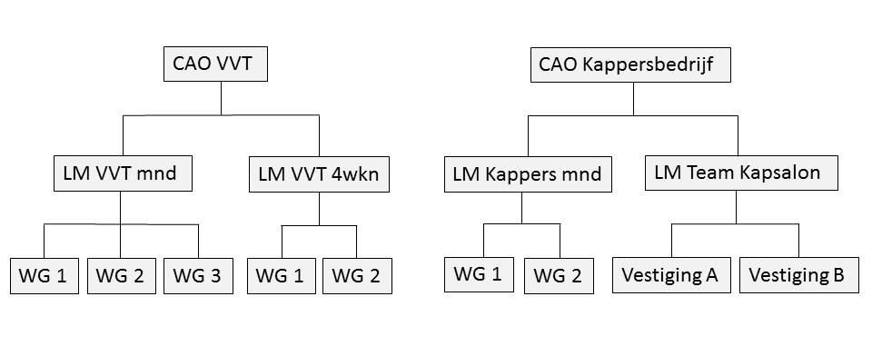 Op loonmodel- en werkgeverniveau kun je zien op welk niveau een regeling is vastgesteld met