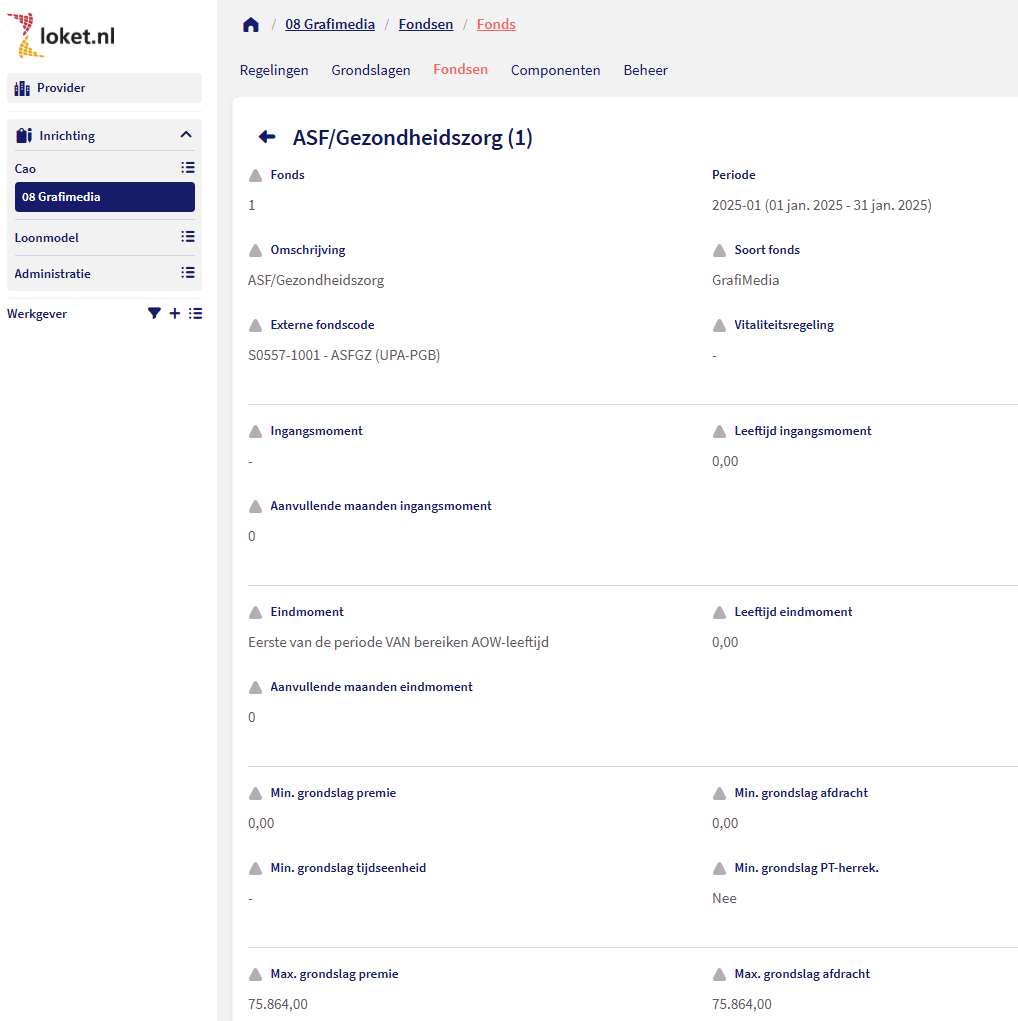 Met behulp van Fondsen kunnen o.a. pensioen-, bedrijfstak- en sociale fondsen worden gedefinieerd. Voor het inrichten van deze optie moet allereerst een fonds worden gedefinieerd. Zodra dit is afgewikkeld dient de fondsgrondslag te worden vastgelegd waarover de premie moet worden berekend.