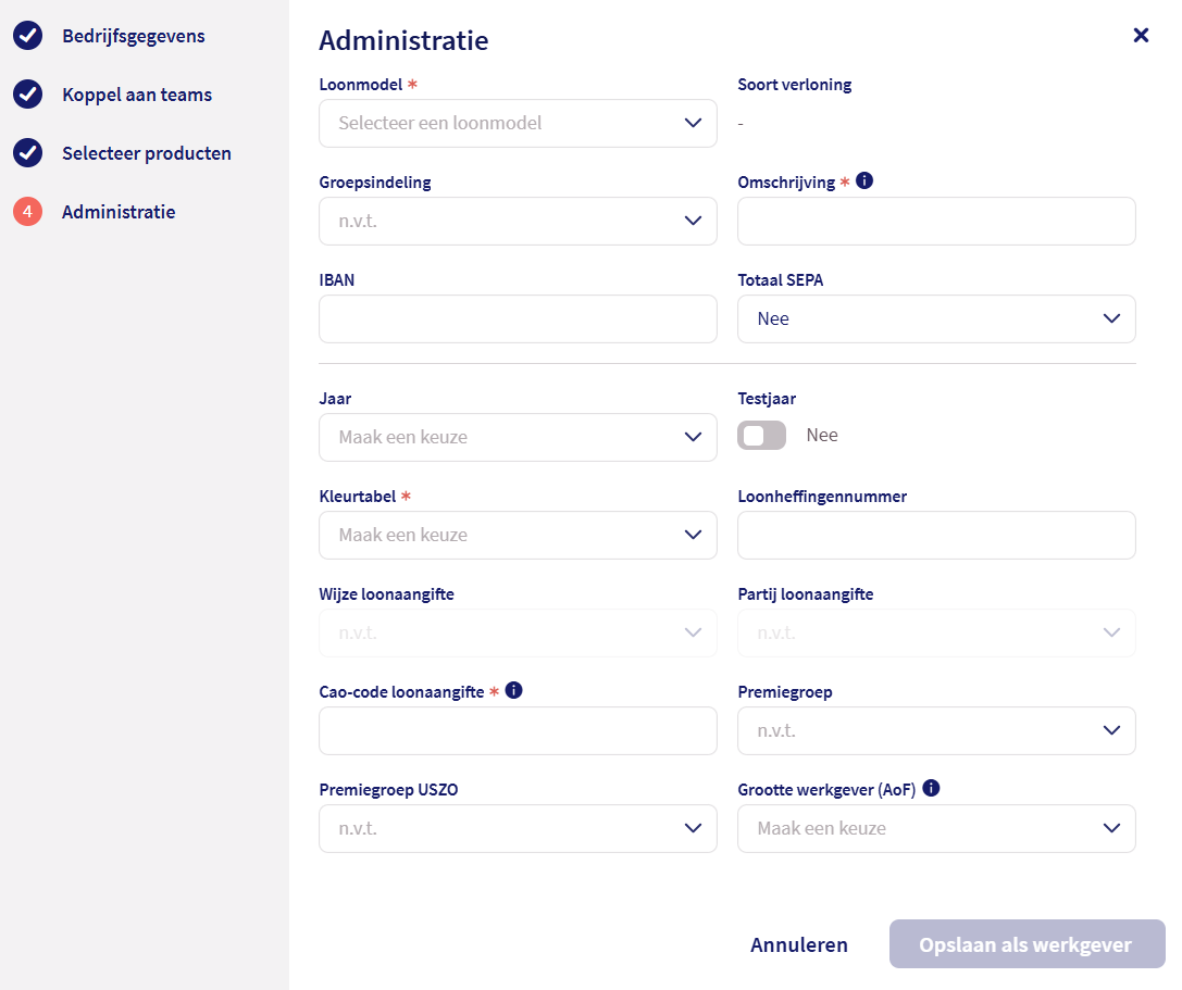 Aanmaken werkgever
