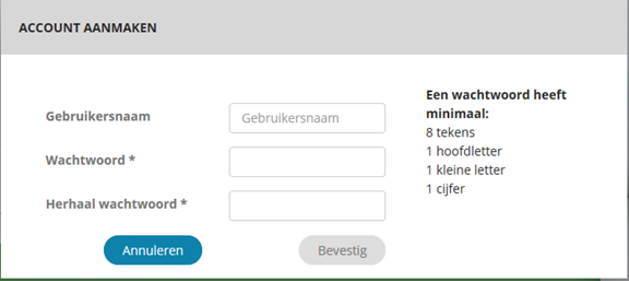 Na het juist invullen van de geboortedatum kun je een gebruikersnaam en wachtwoord kiezen in het onderstaande scherm. Je gebruikersnaam moet uniek zijn en je wachtwoord moet voldoen aan de eisen die rechts in het scherm staan. Gebruik nooit je e-mailadres als gebruikersnaam. Nadat je gebruikersnaam en wachtwoord hebt gekozen, log je automatisch in het Werknemerloket in.