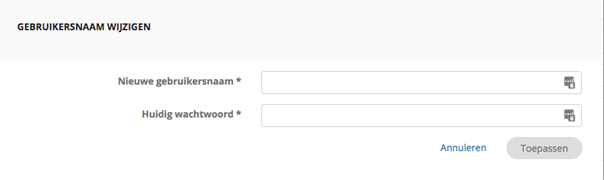 In het onderstaande scherm kun je je gebruikersnaam wijzigen. Vul je nieuwe gebruikersnaam en je wachtwoord in en klik op Toepassen.