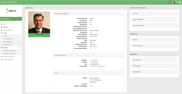 Onder Persoon kun je alle persoonsgegevens die jouw werkgever van je heeft vastgelegd raadplegen. Denk aan je adresgegevens, contactpersoon, partner- en kind gegevens.