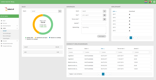 Onder HRM in het menu vind je Verlof.