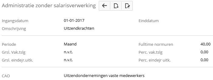 LET OP: Mocht de werknemer na een bepaalde tijd overgaan naar een administratie met salarisverwerking, zal hiervoor een nieuw dienstverband moeten worden aangemaakt. Het wijzigen van administratie voor een werknemer is niet mogelijk.