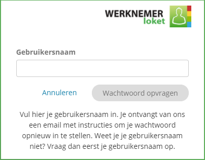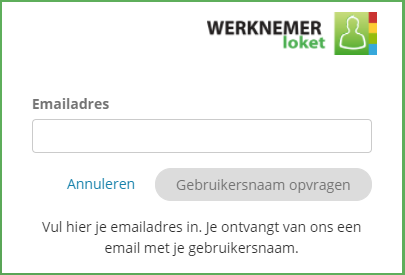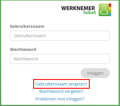 Ook kan de werknemer via https://werknemer.loket.nl/ klikken op 'Gebruikersnaam vergeten?'.