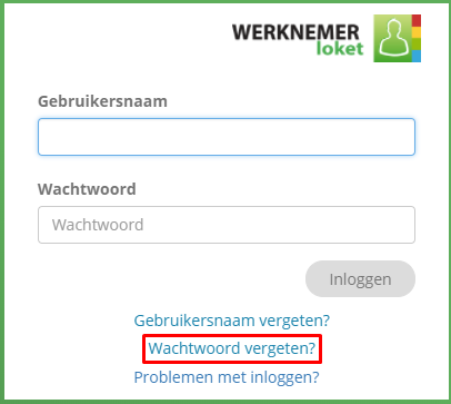De werknemer gaat naar https://werknemer.loket.nl/ en klikt op 'Wachtwoord vergeten?'.
