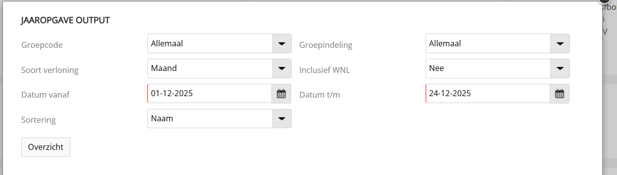 Hierdoor bestaat de mogelijkheid voor de gebruiker om voor een bepaalde groep werkgevers de jaaropgaven op te vragen. Bij de datum vanaf en datum t/m kan de datum van afsluiting worden aangegeven.