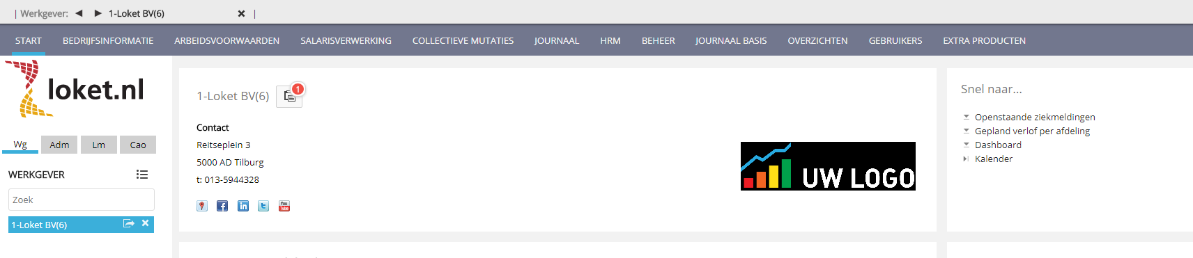 De startpagina Werkgever geeft de gebruiker (WG) direct inzicht in de status van het verloningsproces, loonaangifte, openstaande signalen, mededelingen en notities.