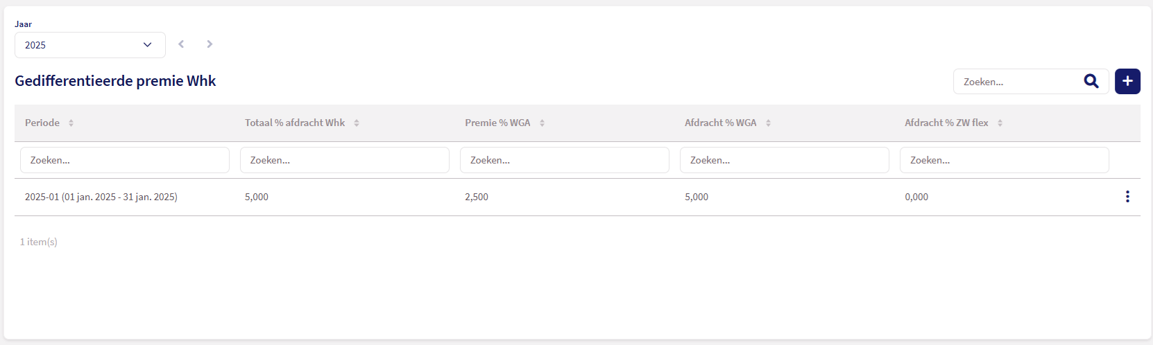 Loket voert bij de jaarafsluiting van de werkgevers van het oude jaar naar het nieuwe jaar voor alle werkgevers waar een premie- of afdrachtspercentage WGA of ZW flex is gevuld automatisch de gedifferentieerde premies Whk in.