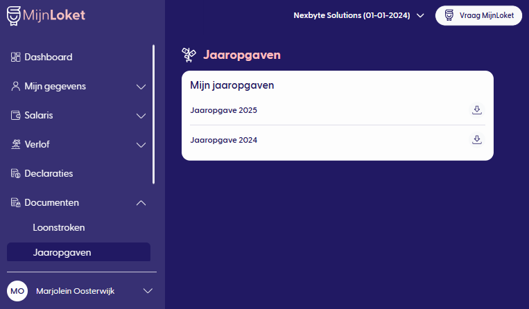 Medewerkers zien hun jaaropgaven in MijnLoket via: