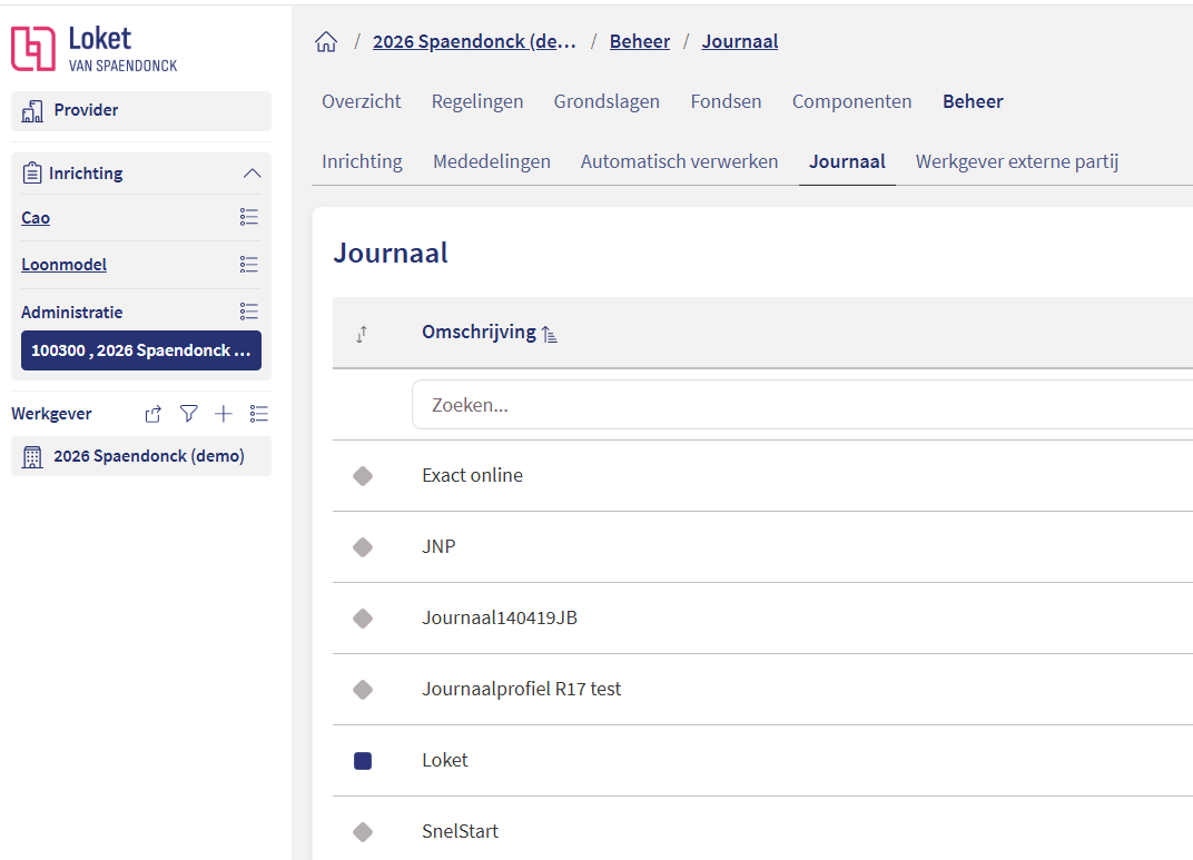 Het is per deze release mogelijk om ook andere journaalprofielen die op provider- of loonmodelniveau zijn aangemaakt op administratieniveau te bewerken. Ga hiervoor naar Inrichting - ADM - Beheer - Journaal.