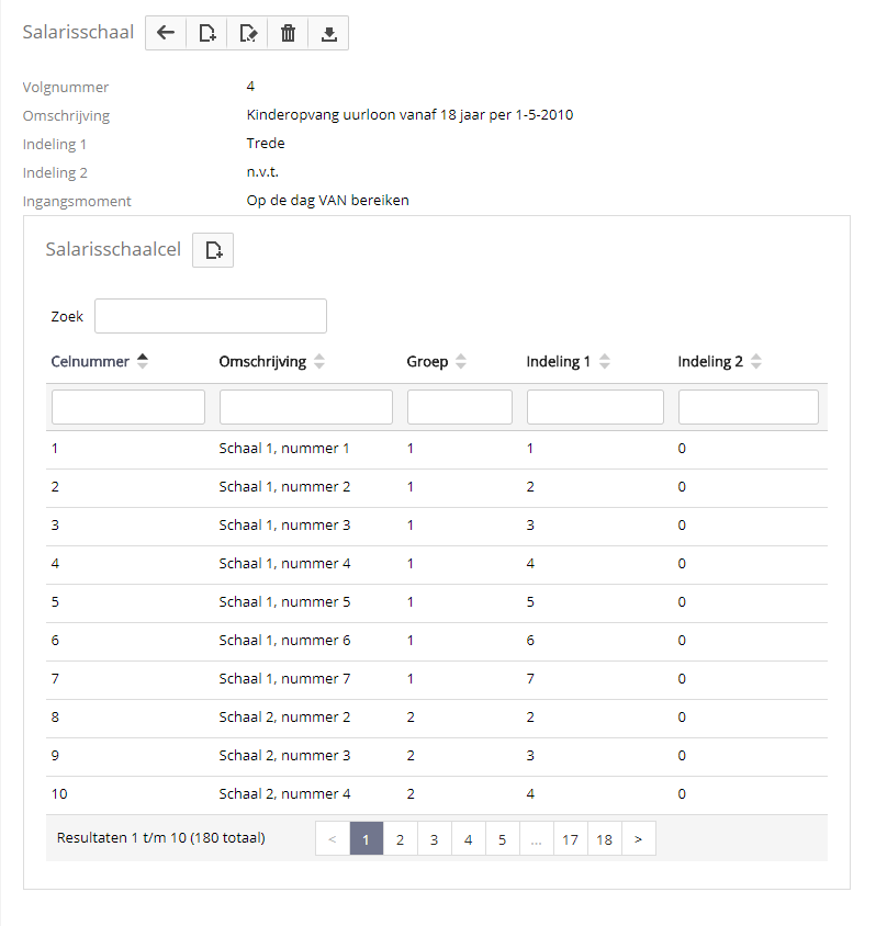 Bovenstaand een voorbeeld van een inrichting van een salarisschaal.