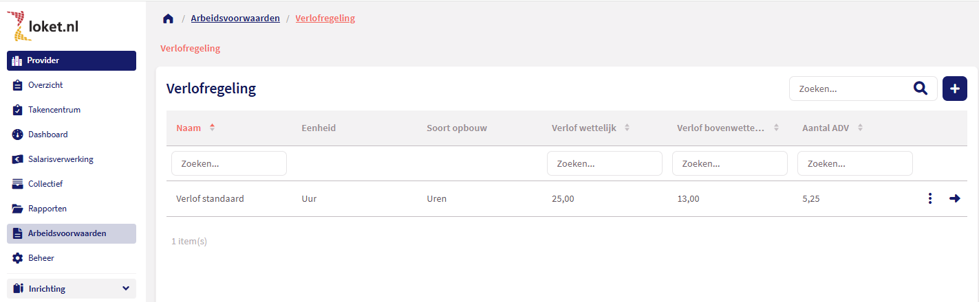 Het is in Loket mogelijk om op providerniveau één of meerdere verlofregelingen vast te leggen. Vervolgens is het mogelijk om op werkgever gebruik te maken van deze sjabloon verlofregeling.