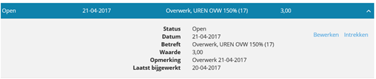 - Betreft: Hier selecteer je wat voor overuren (of eventueel onkosten) het zijn.