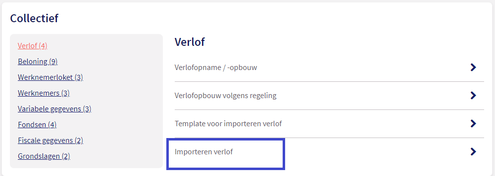 Werkgever --> Collectief -> Importeren verlof