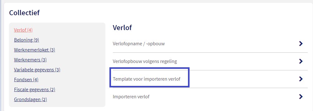 Werkgever --> Collectief -> Template voor importeren verlof