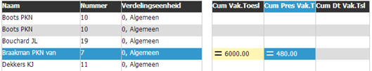 Onderstaande schermafdruk vanuit de browser variabele gegevens waarbij grondslag 1 in gebruik is voor vakantietoeslag en bovenstaande cumulaties bij PKN Braakman zijn verwerkt:
