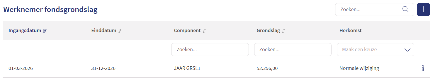 - Navigeer naar de gewenste werknemer via Dienstverband> Salarisverwerking > Fondsen > Werknemer fondsgrondslag.