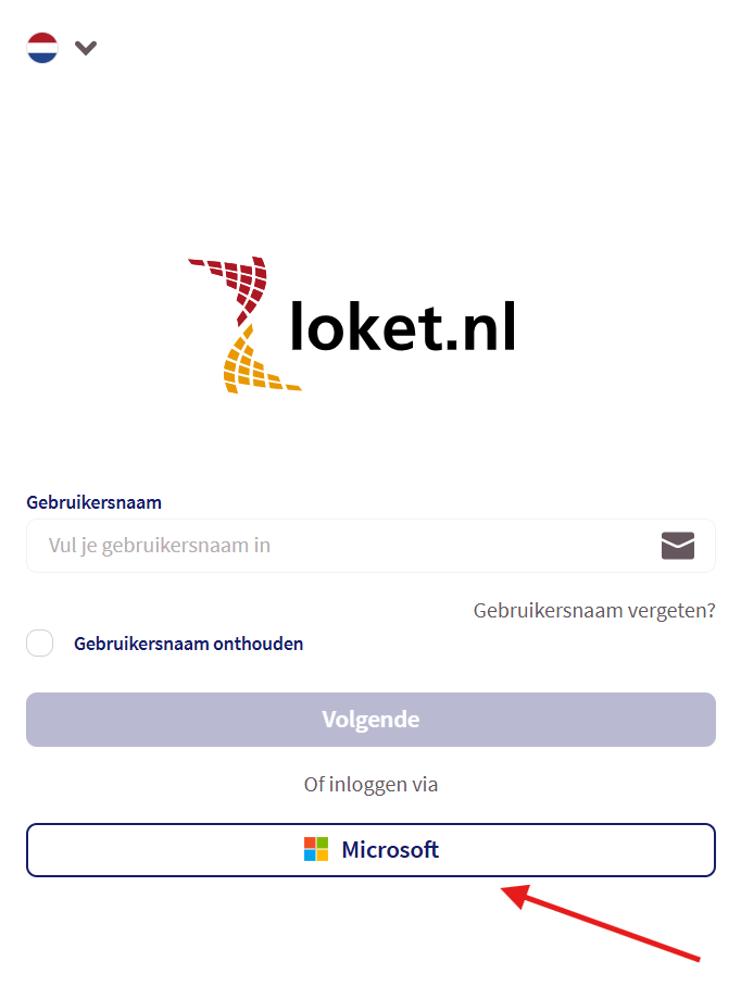 5. De gebruiker kan nu naar de inlogpagina van Loket gaan en op de Microsoft inlog knop klikken waarna men automatisch wordt ingelogd in Loket.